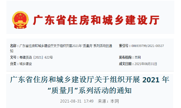 為深入貫徹習(xí)近平新時代中國特色社會主義思想,全面落實黨的十九大和十九屆二中、三中、四中、五中全會精神,牢固樹立“質(zhì)量第一”的意識,不斷提升建筑工程品質(zhì),根據(jù)《市場監(jiān)管總局等20個部門關(guān)于開展2021年全國“質(zhì)量月”活動的通知》(國市監(jiān)質(zhì)〔2021〕51號),我廳決定于9月組織開展2021年全省住房城鄉(xiāng)建設(shè)系統(tǒng)“質(zhì)量月”活動。現(xiàn)將有關(guān)事項通知如下: