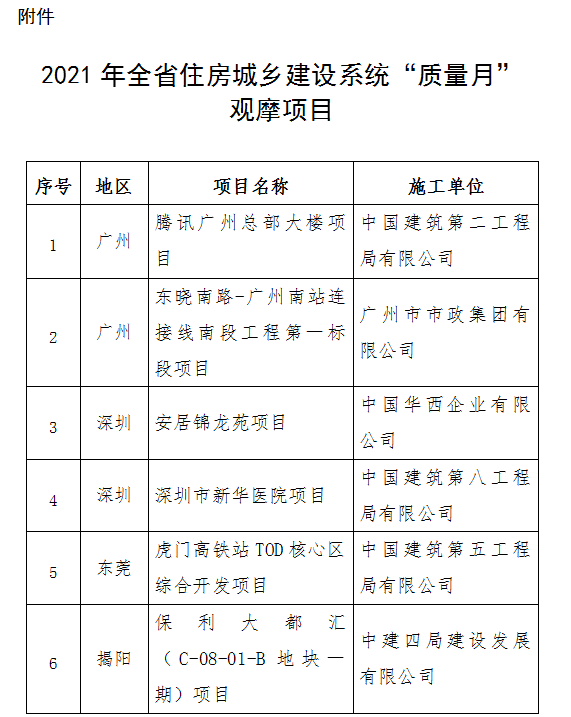 附件:2021年全省住房城鄉(xiāng)建設(shè)系統(tǒng)“質(zhì)量月”觀摩項目