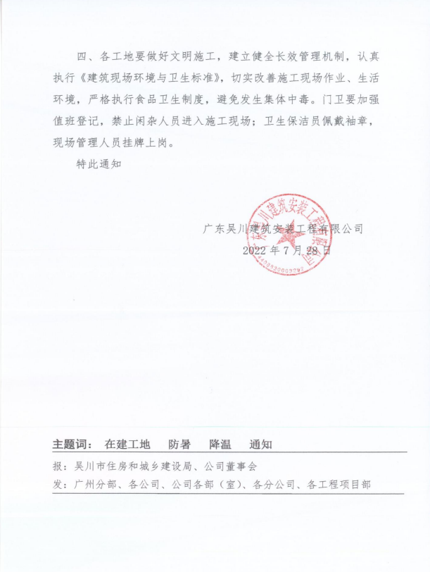關(guān)于切實(shí)做好在建工地防暑降溫工作的通知